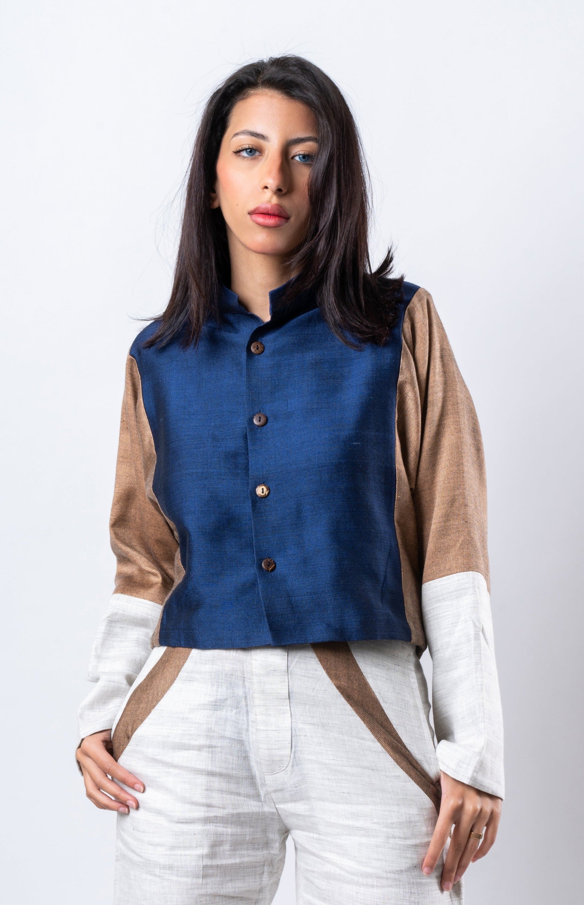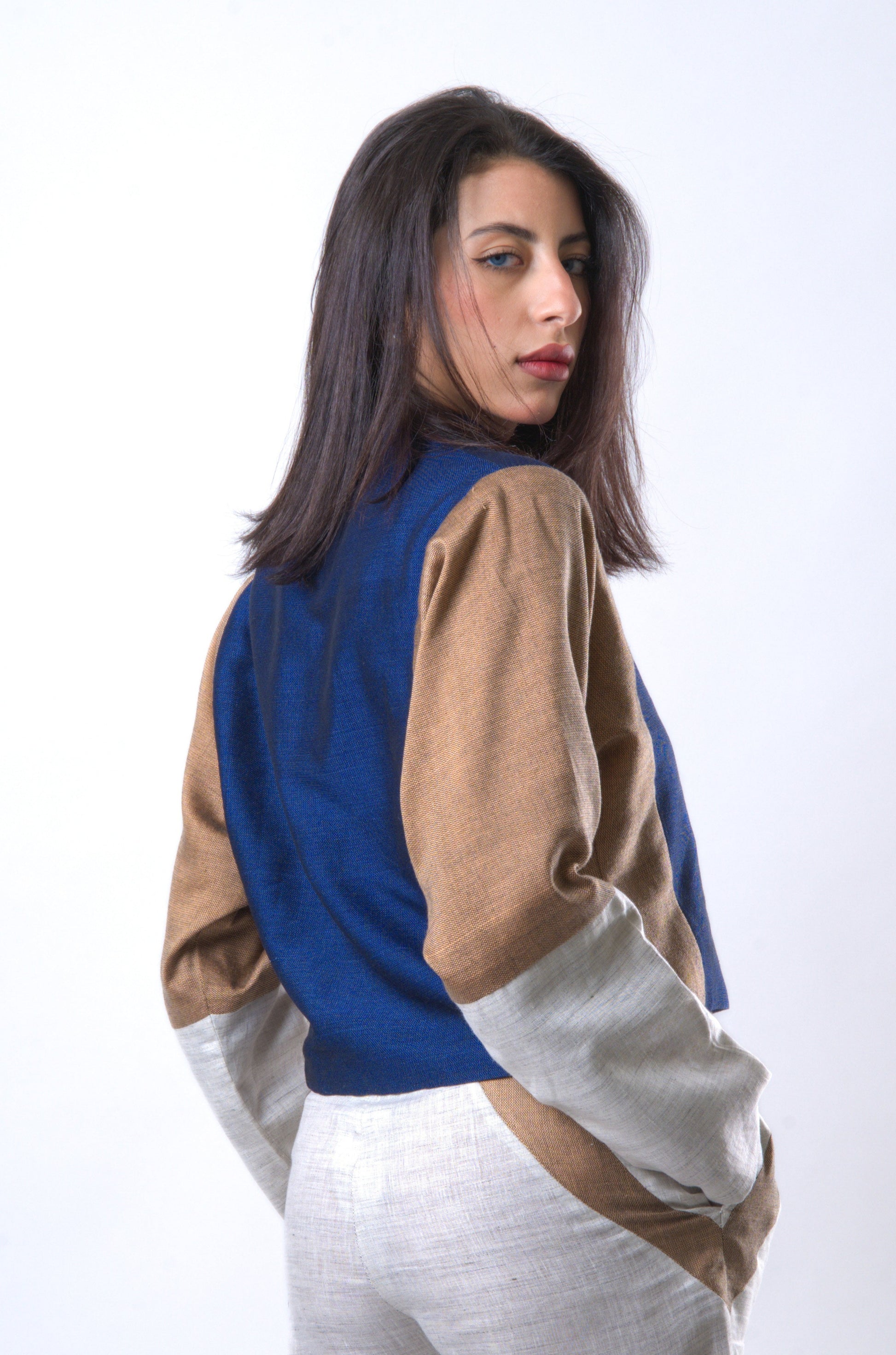 Cropped blazer with batwing sleeves and a Mandarin collar