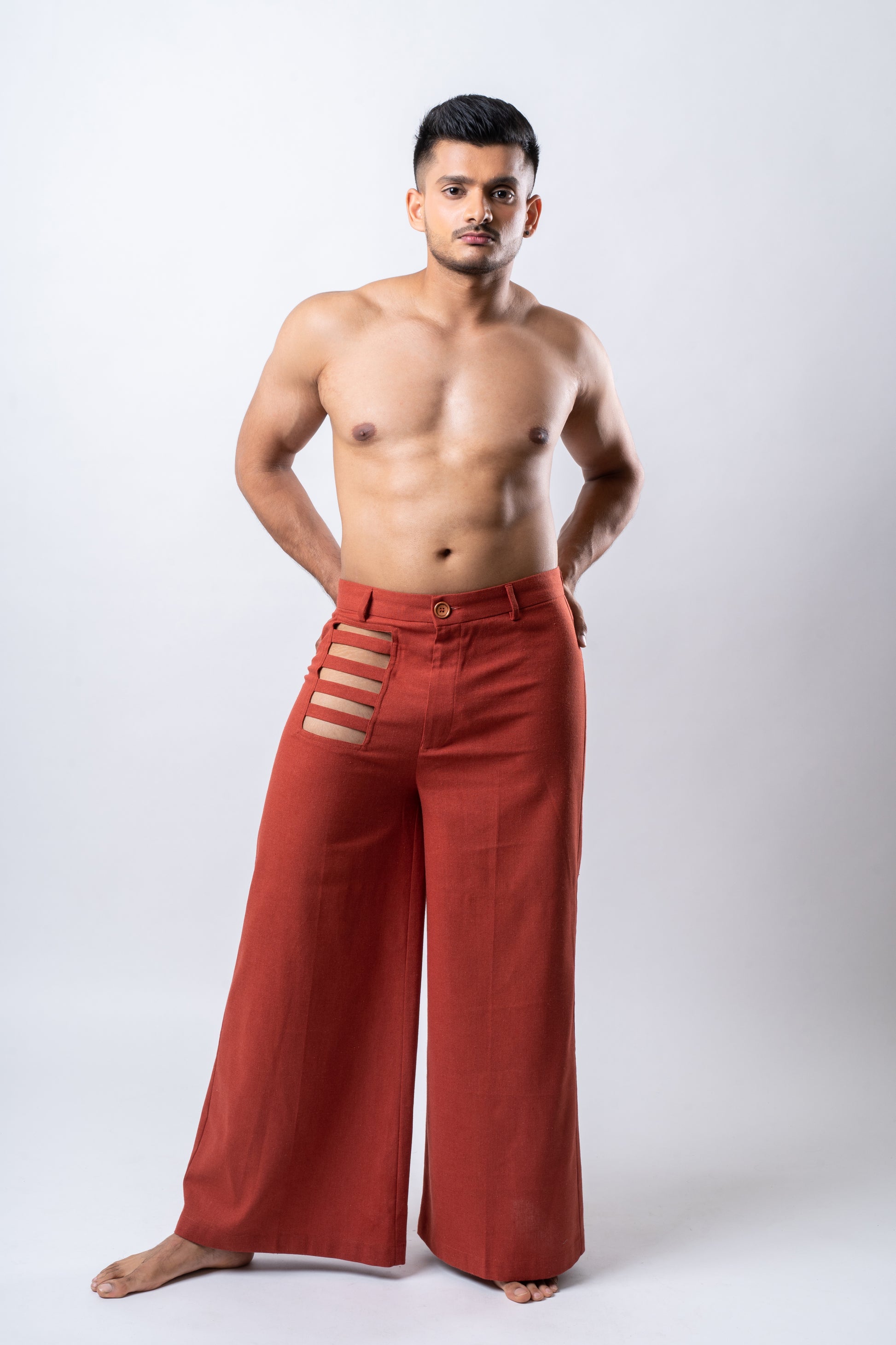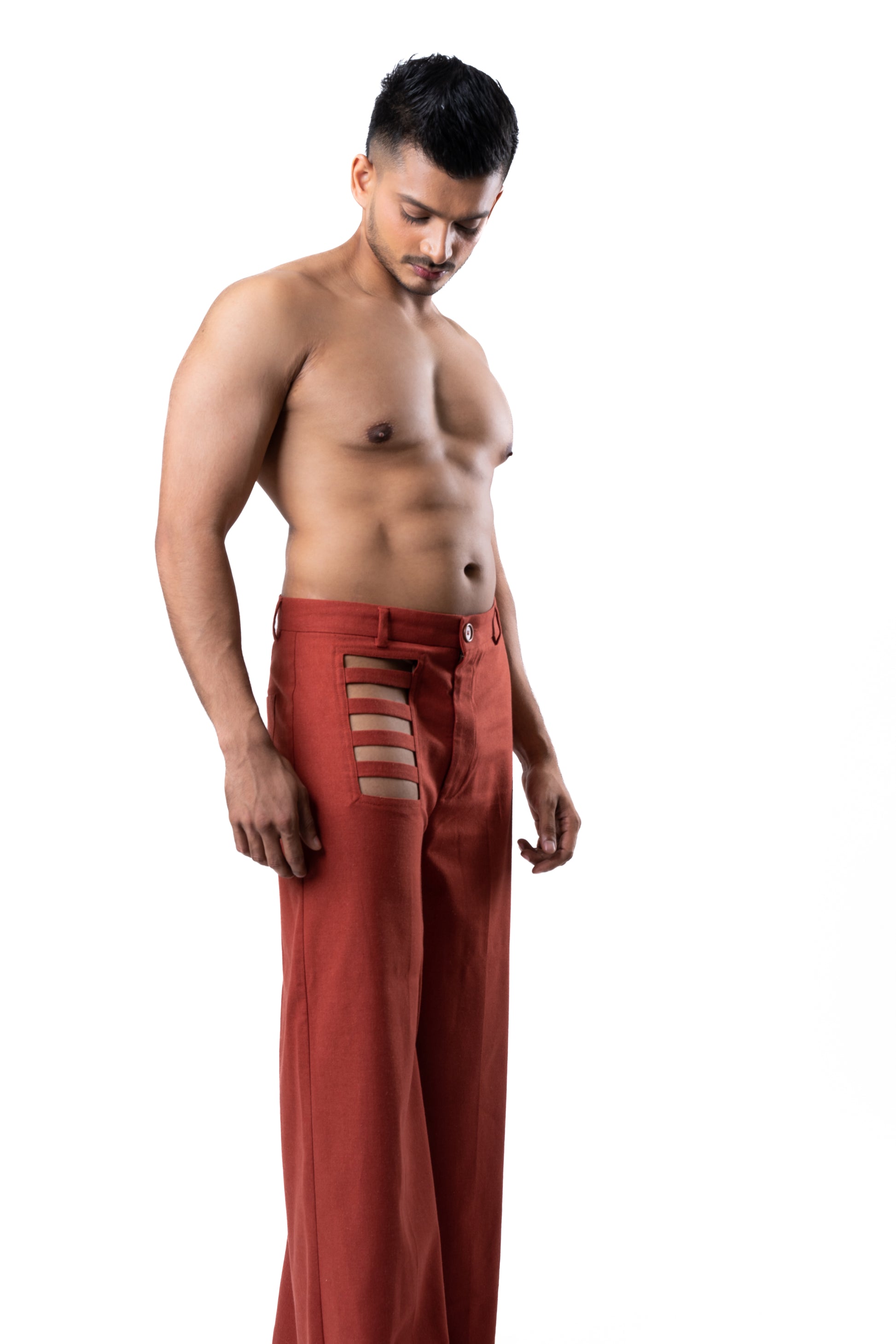 Wide fitted pants with cut-out details in Brick Red