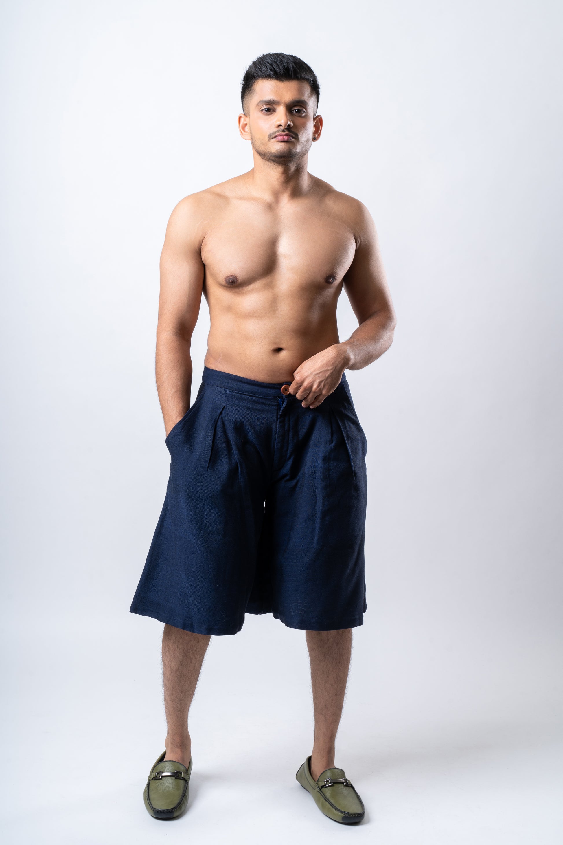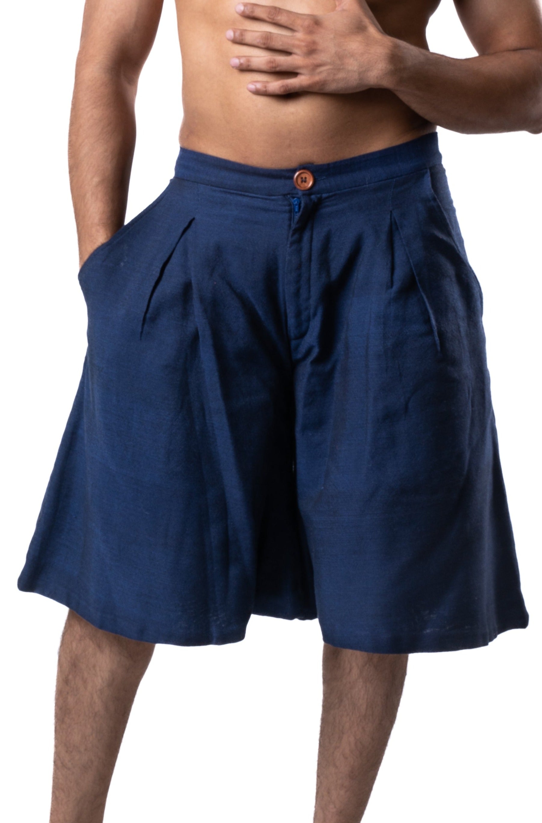 Wide, mid-length pleated culotte in Night Blue